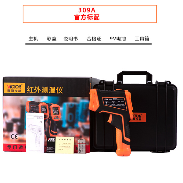 VICTOR 309A -32℃~1080℃ Infrared Thermometer with Emissivity adjustment 50:1 Handheld meter VA Color Screen