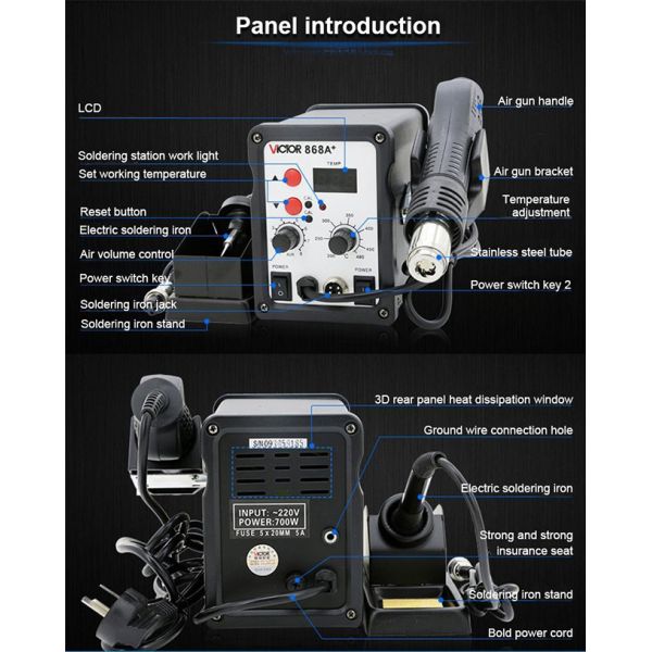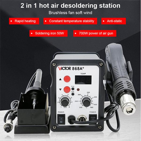 VICTOR 868A+ Hot Air Gun Soldering Station 2 In 1 SMD Iron Temperature Luminotron Indication Solder Station For Phone Repair Tool