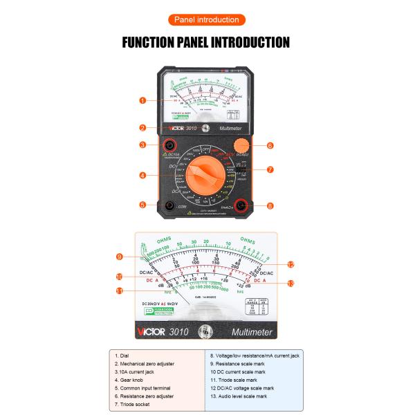 VICTOR 3010 /3021 Analog Multimeter Portable Multitester Designated For Measurement Of Small Current Circuits